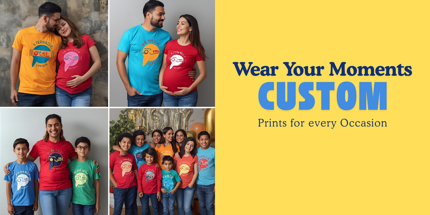Custom T-shirts for every occasion—Maternity, Weddings, Birthdays, and more. Choose from our vast design library or create your own unique print!