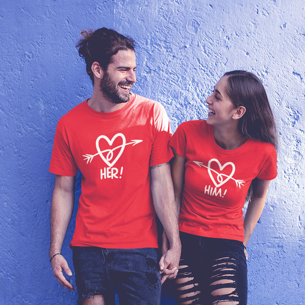 Heart Arrow Matching Couple Tshirt for Men & Women Cotton Printed Regular Fit Tshirts- (Set of 2)-114